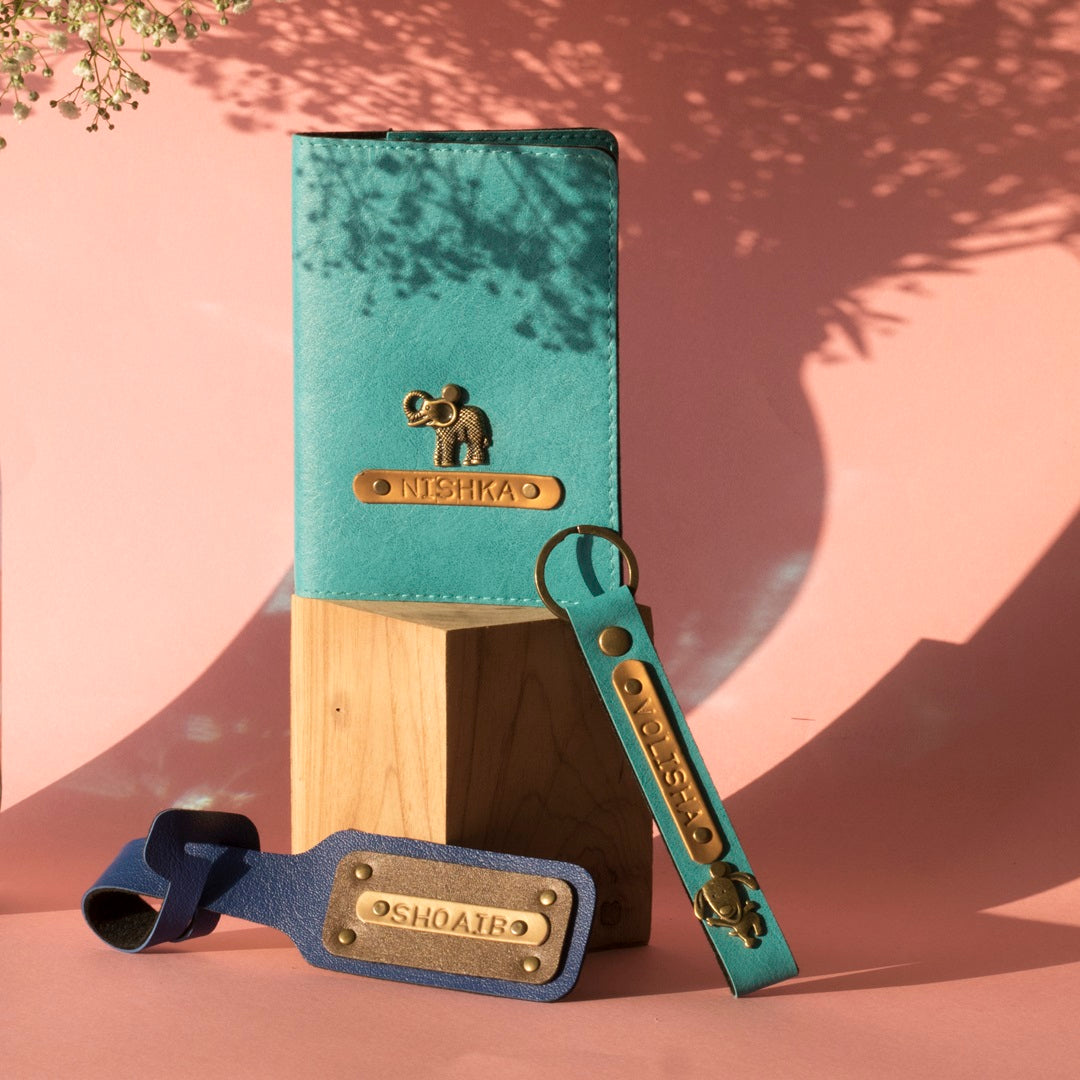 Passport Cover & Keychain Gift Set - perhaps the perfect customized gift set for your partner, colleagues, friends, and family. If you are someone who likes to hop on flights and explore the world, our personalized passport cover, and keychain with name will act as the perfect travel accessory.